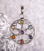 Chakrasteinchen: Granat, Carneol, Citrin, Peridot, Iolith, blauer Topaz, Amethyst ø: 24 mm